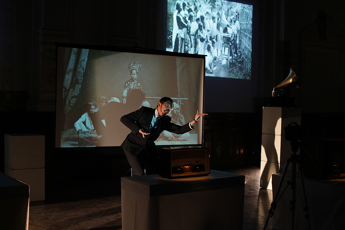 In Echoing Europe – Postcolonial Reverberations re-arrangiert meLê yamomo, Performer, Komponist und Wissenschaftler für Sound-Studies, die europäische Kolonialgeschichte der Musik. Im Zentrum stehen die Aufnahmetechniken in Zeiten des Kolonialismus, konkret in der Zeit von 1890-1950 in Südostasien.