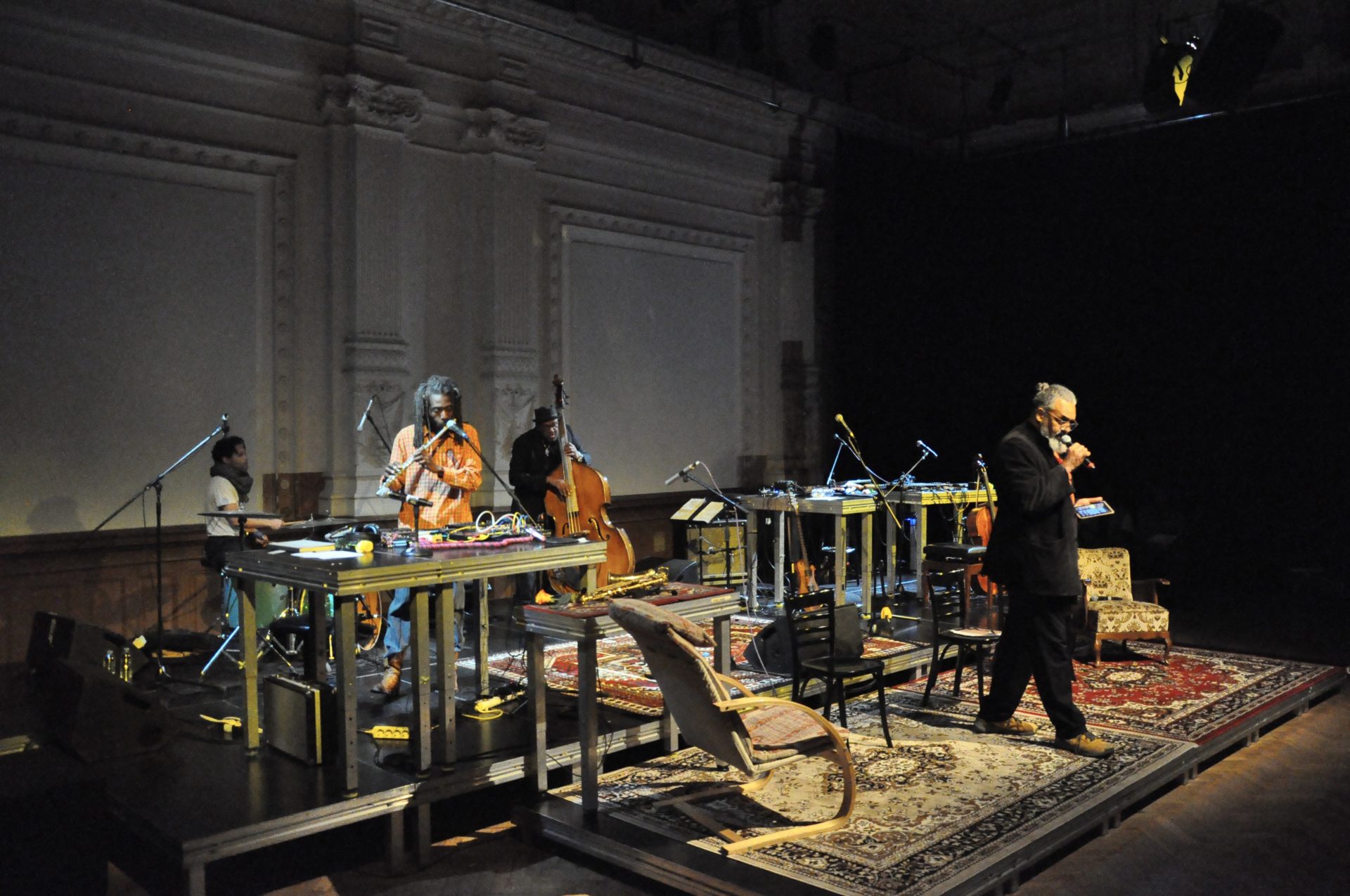 Das Wechselspiel zwischen dem Wort und der Sprache der Töne, zwischen Beats und Geräuschen verstehen wir als Musik. Diese Versammlung, das town hall meeting, gibt dabei die Vielstimmigkeit der im Saal versammelten Kultur wieder, es nimmt die Beobachtungen aus dem Publikum auf – mit dem Ziel: making it a true polyphonic happening!