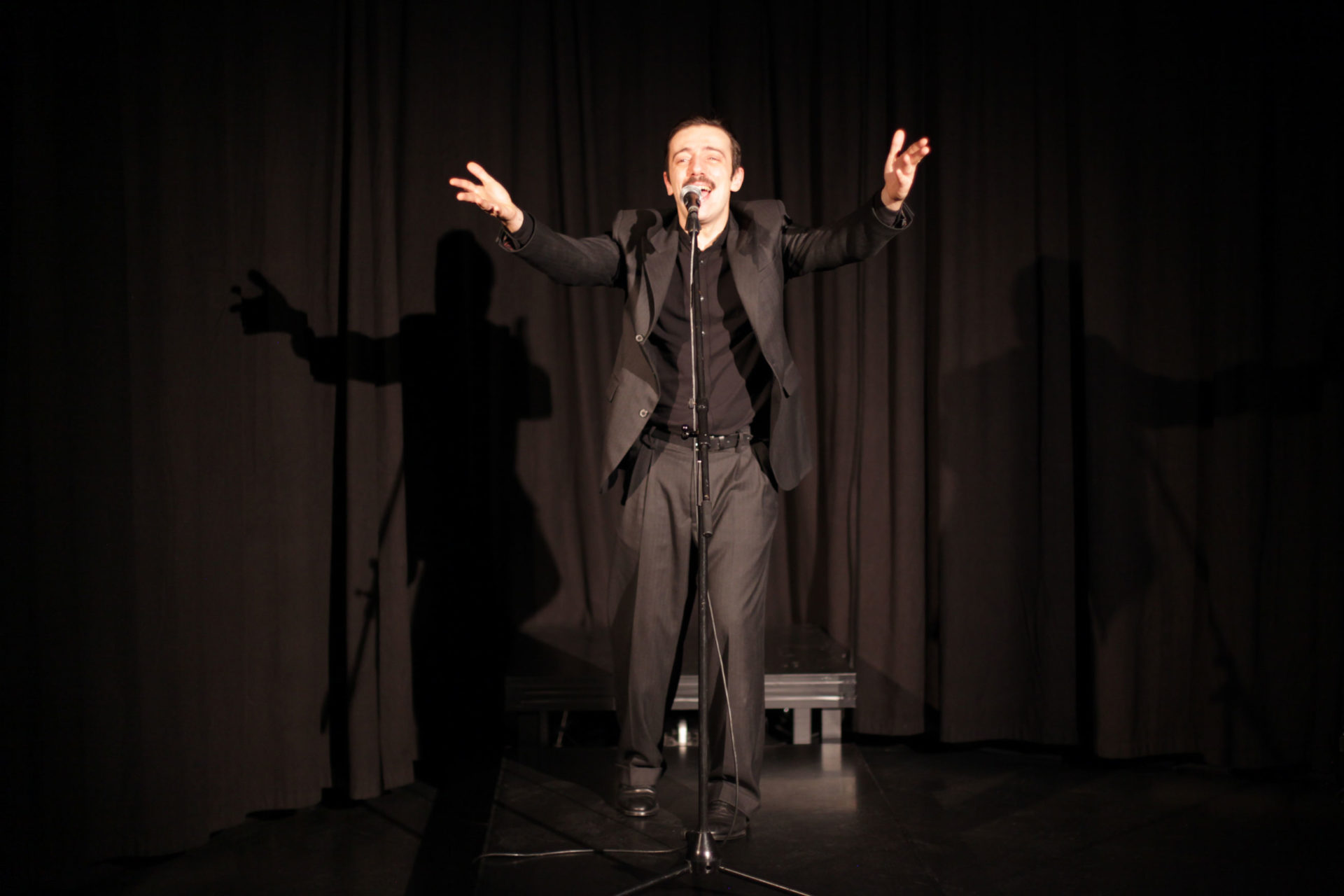 Splitter ist das Debut von Michail Fotopoulos. Er war bisher am Ballhaus Naunynstraße als Schauspieler in Die Dunkelkammer von Kostis Kallivretakis und Bloody, Medium oder durch in der Regie von Anestis Azas zu sehen und ist nun erstmals Autor und Performer.
