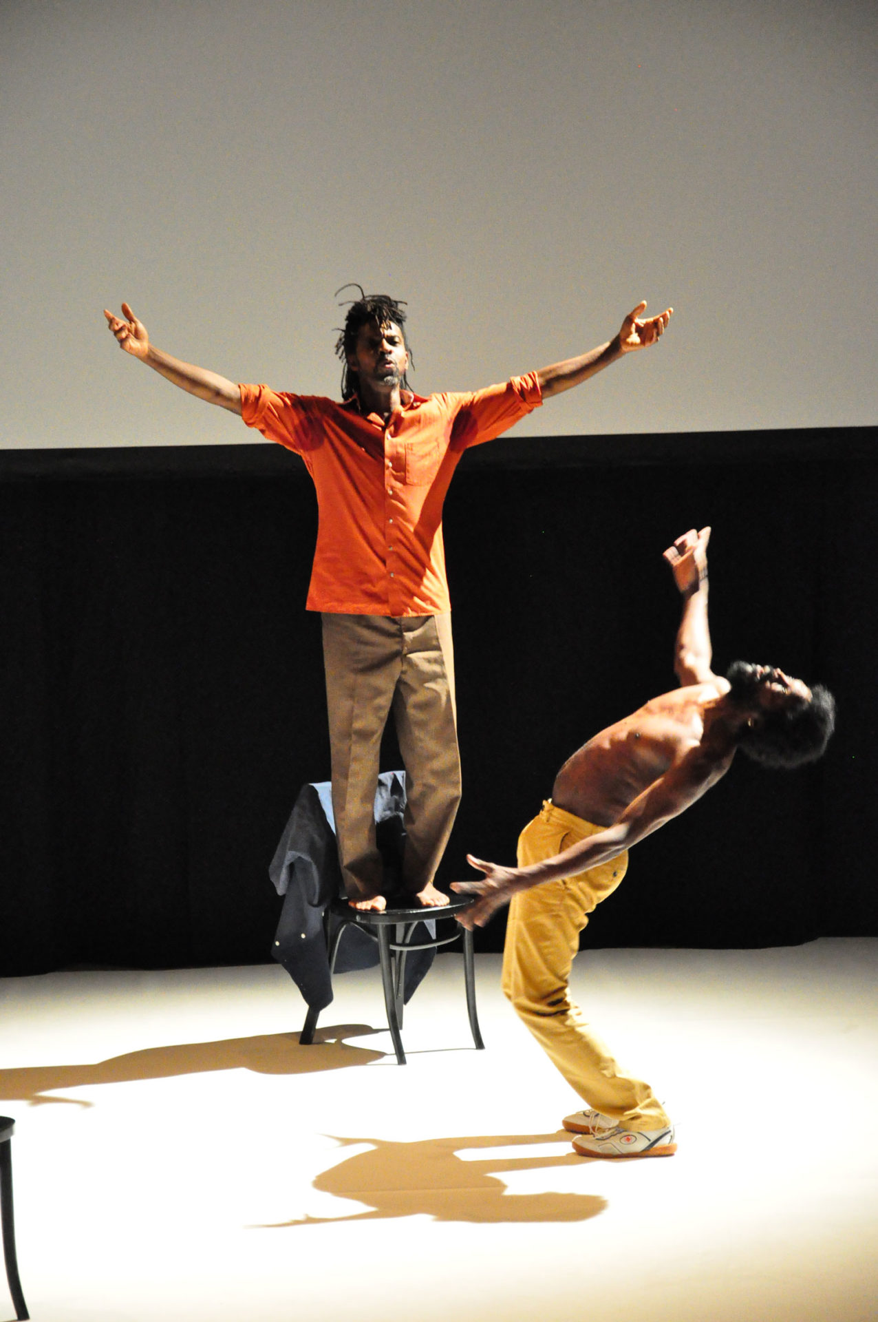 Wie in einer experimentalen Anordnung loten die drei Performer*innen die Möglichkeiten der zulässigen Nähe aus und konfrontieren das Publikum mit dem Oszillieren zwischen Entertainment und Gewalt.
